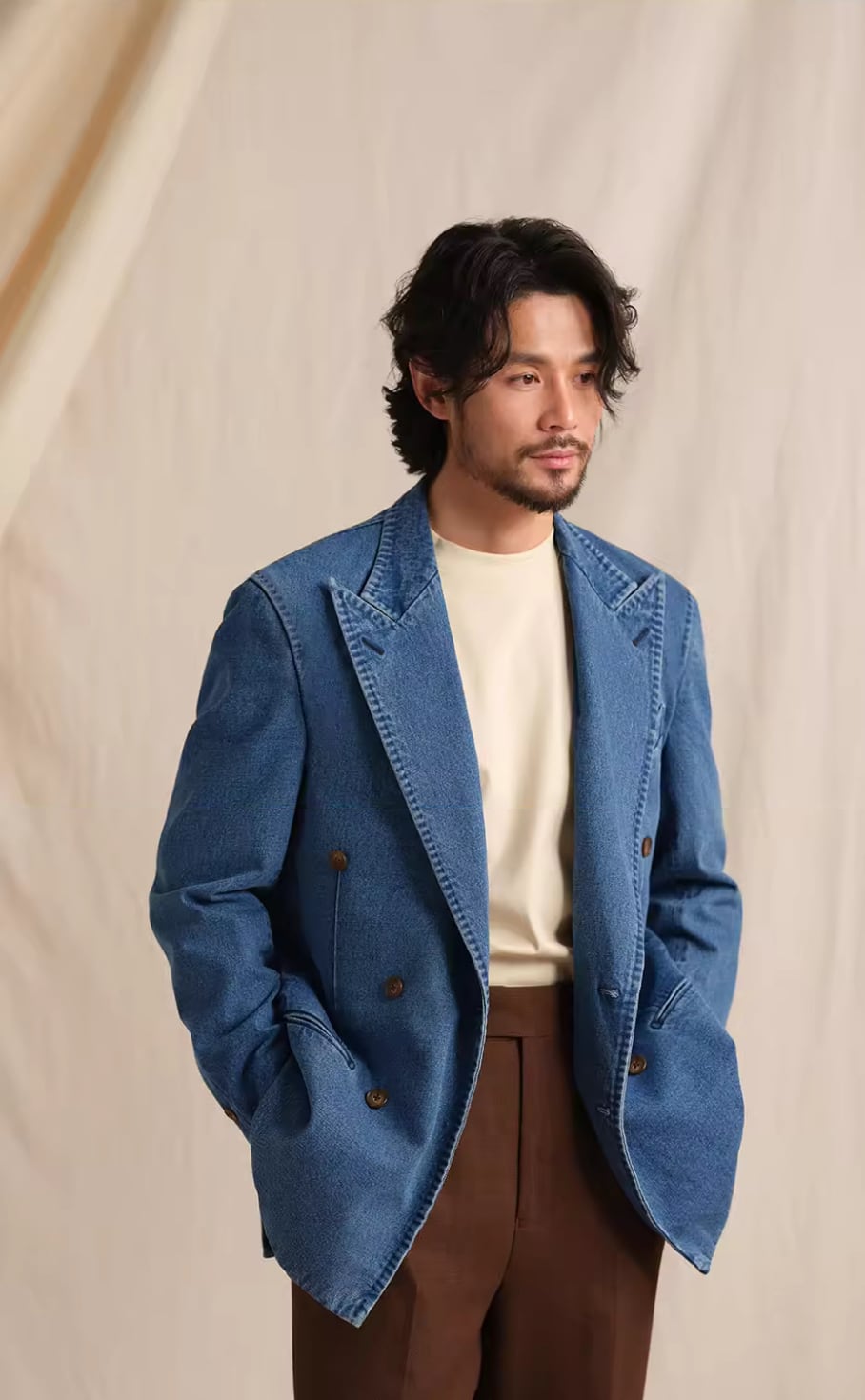 【スタイリッシュで機能的なデニムダブルジャケット】